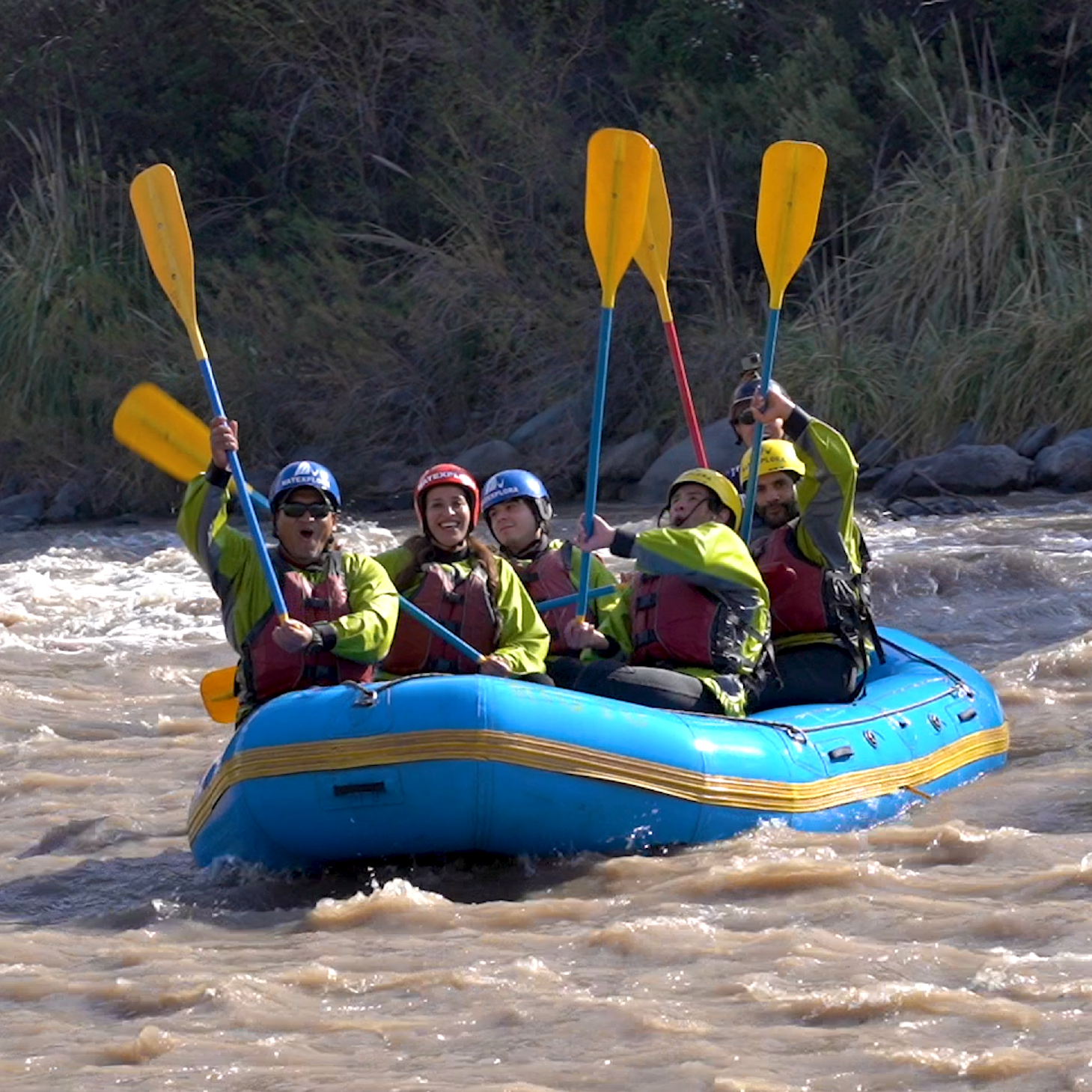 Vive la emoción del rafting con nosotros, ubicados a una hora de Santiago en la Plaza de