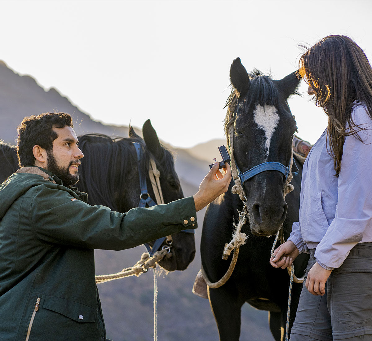 Sin duda alguna, pedir a la persona que amas que unan sus vidas durante un viaje, más aún, en un entorno tan romántico como la Cordillera de los Andes, es una respuesta "Sí" casi asegurada, y un comienzo fuera de la rutina para esta nueva etapa. Demuestra a tu pareja todo tu amor y dedicación, preparando el momento que cambiará sus vidas para siempre, adquiriendo un paquete todo incluido de petición de matrimonio, en alguna de las actividades que tenemos para ti.